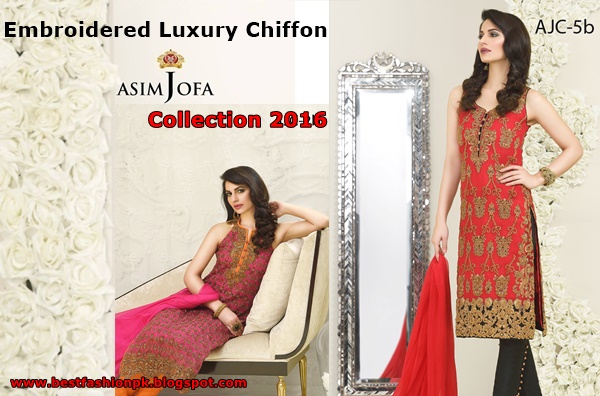 Asim Jofa finally nourished the best chiffon with best designs of the season. How perfectly the designs have been made on pure premium chiffon with the fine quality of thread under the digital embroidered mechanism. Asim Jofa has included all the colors of season in this best chiffon dress collection of 2016-2017 including elegant red, trendy black and glorious pink. So, enjoy the seasonal events in best style and wear the best chiffon dress collection of the season 2016 and be the luxurious with this Asim Jofa Embroidered Luxury Chiffon Dresses 2016 collection.